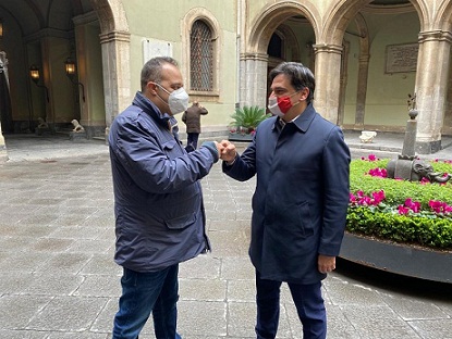 Come testimone di rinascita e di speranza il primo cittadino ha voluto accanto a sé Pietro Furnari, l'ingegnere 47enne sopravvissuto alla malattia dopo un drammatico periodo di ricovero nell'ospedale Garibaldi.