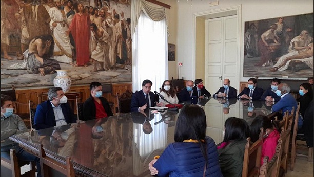 Al fianco del Sindaco, in sala giunta, erano presenti gli assessori Alessandro Porto, Sergio Parisi, Pippo Arcidiacono, Fabio Cantarella, Michele Cristaldi, il presidente del Consiglio comunale Giuseppe Castiglione, il capo di gabinetto del Sindaco, Giuseppe Ferraro. Hanno partecipato all'incontro anche Daniela Grancagnolo, per testimoniare la sua riconoscenza, la moglie di Celestino, Melody Manibo, le figlie Isabella Angela, 10 anni, e Elizabeth, 7, e alcuni familiari e amici, i segretari della Consulta comunale dei migranti Leni Vallejo e Arefayne Beraki.