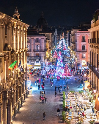 Mercatini natalizi aperti, luminarie accese nella via Etnea e nelle altre vie dello shopping, con il tradizionale albero colorato di rosso e azzurro, alto 12,5 metri in piazza Università, donato al Comune dallo sponsor Glo brand di Bat Italia.