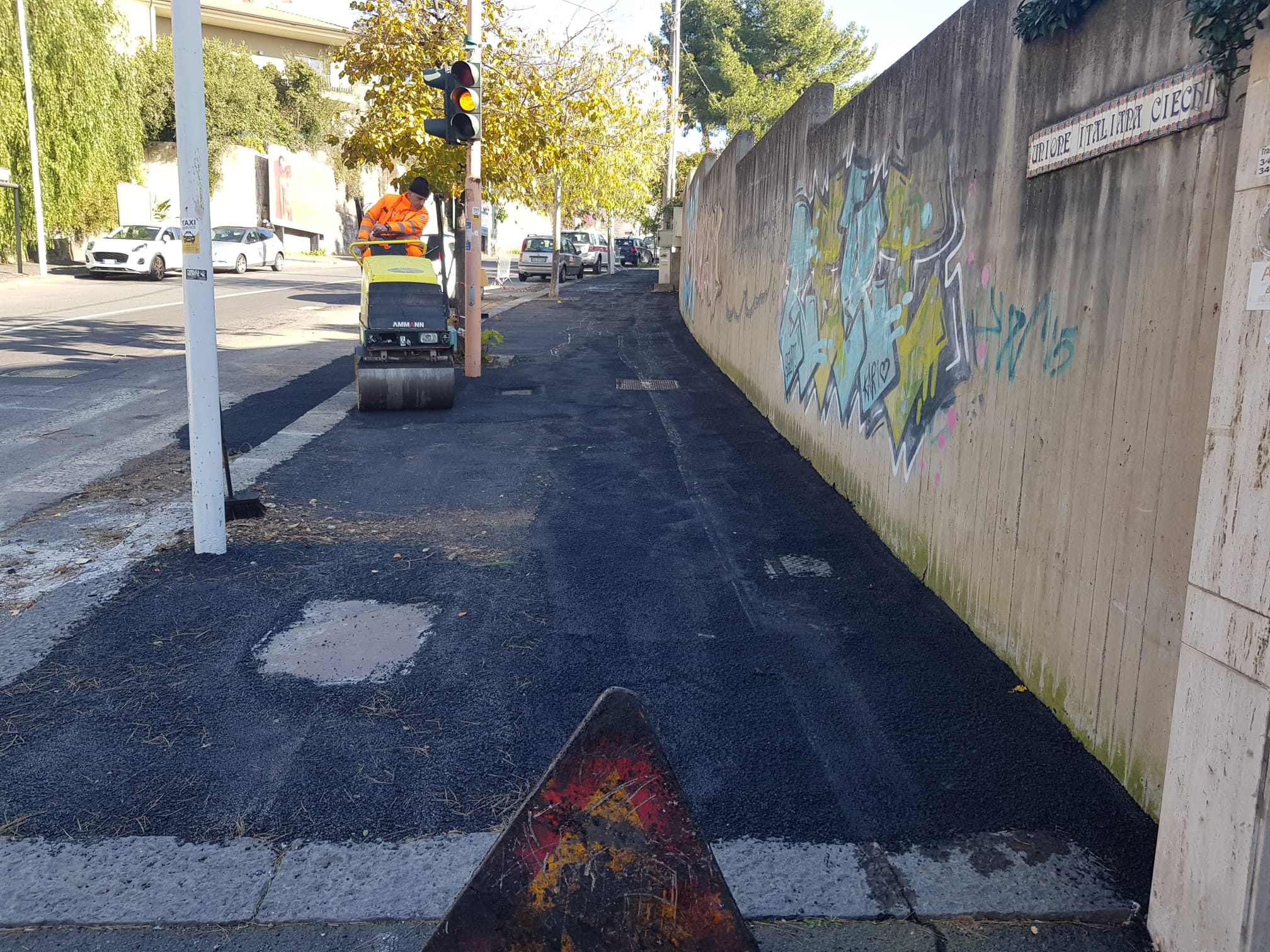 L'intervento della Multiservizi, che ha operato su mandato dell’Amministrazione Comunale, ha riguardato lo svellimento del marciapiede che si presentava divelto e gonfio in più punti a causa delle radici degli alberi, che avevano deformato il manto stradale. Gli operai hanno proceduto quindi all'estrazione di un albero a rischio caduta oltre a diversi ceppi e di una parte della sede stradale pericolosa. È stato quindi ripristinato il bordo lavico del marciapiede per circa 40 metri e si è proceduto al riempimento dei marciapiedi e asfaltato con finitura per consentire una migliore percorribilità anche ai diversamente abili.