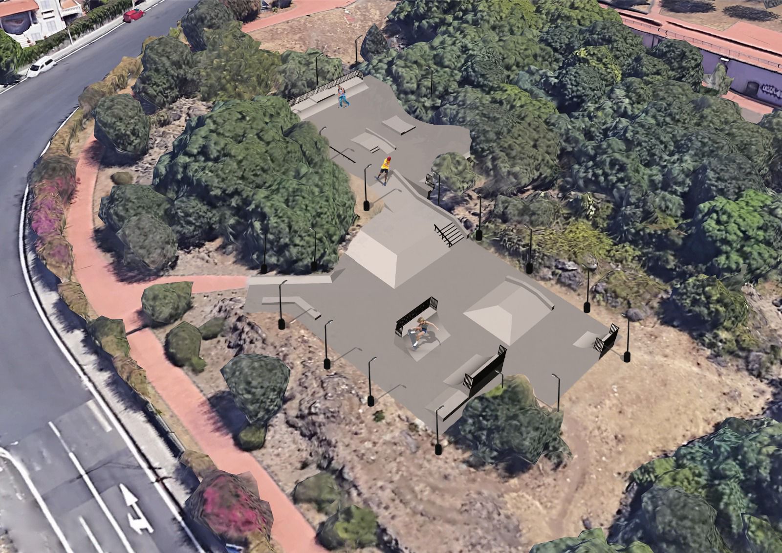 Col nuovo progetto lo Skate Park si inserisce nel piazzale e ingloba l’aiuola a prato esistente, prevedendo la sua “rigenerazione” e modellazione come area verde relax dove poter osservare gli skaters in sicurezza e comfort, con gli esemplari arborei adulti che garantiranno un adeguato ombreggiamento. Il progetto dello Skate Park, infatti, è stato concepito considerando il contesto paesaggistico, connettendolo al disegno degli spazi verdi del parco Gioeni.