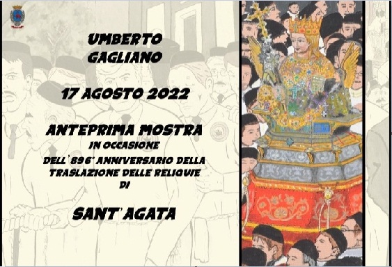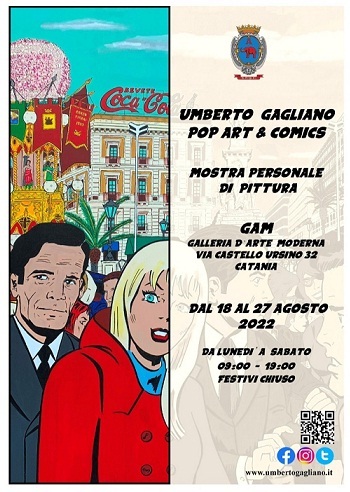 Mercoledì 17 agosto alle ore 11 nella Galleria d'arte moderna, in via Castello Ursino 32, anteprima della mostra di pittura di Umberto Gagliano dedicata a Sant'Agata. La personale dell'autore, all'insegna della pop art, sarà aperta al pubblico dal 18 al 27 agosto, con inaugurazione venerdì 19 alle ore 11. Le visite, a ingresso libero, sono previste dal lunedì al sabato, dalle ore 9 alle 19.