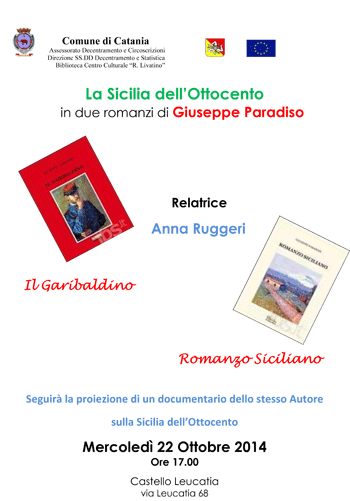 La Biblioteca Centro Culturale "Rosario Livatino" propone per Mercoledì 22 Ottobre 2014 alle ore 17.00 la presentazione dei libri "Il Garibaldino" e "Romanzo Siciliano" di Giuseppe Paradiso.