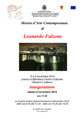 Sabato 8 e Domenica 9 Novembre la Biblioteca Centro Culturale "R. Livatino" propone una personale di pittura dell'artista Leonardo Falzone.