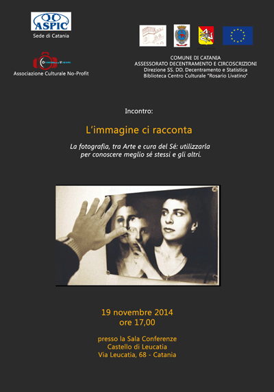 Mercoledì 19 Novembre 2014, presso la Sala Conferenze del Castello Leucatia, la Biblioteca C.C. "R.Livatino" , in collaborazione con l' ASPIC sede di Catania Associazione Culturale No-Profit "Officina delle Visioni", propone la conferenza "L''immagine ci racconta. La fotografia tra arte e cura del sé: utilizzarla per conoscere meglio se stessi e gli altri."