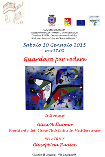 Sabato 10 Gennaio 2015 alle ore 17.00, la Biblioteca Centro Culturale "R. Livatino" propone, in collaborazione con il Lions Club Catania Mediterraneo, la conferenza "Guardare per vedere".
