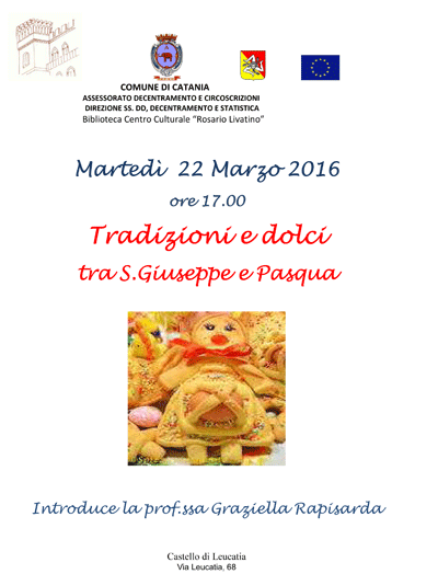 Martedì 22 Marzo 2016 alle ore 17.00, la Biblioteca C. C. "R. Livatino" propone la conferenza Tradizioni e dolci tra S. Giuseppe e Pasqua