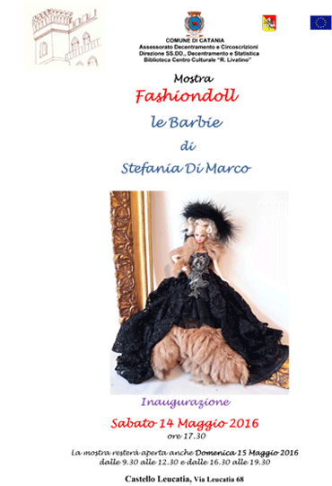 Sabato 14 e Domenica 15 Maggio 2016 la Biblioteca Centro Culturale "R. Livatino, visto il notevole consenso riscosso lo scorso anno, ripropone la mostra Fashion doll, l'arte di creare Barbie uniche al mondo, realizzata da Stefania De Marco.