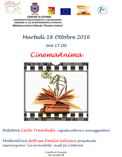Martedì 18 Ottobre alle ore 17.00, la Biblioteca Centro Culturale "R. Livatino" propone la conferenza CinemaAnima.