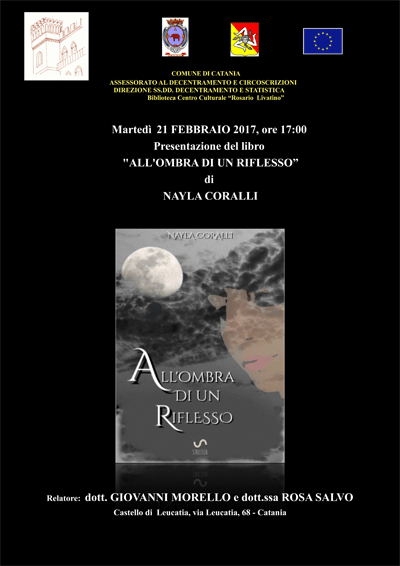 Martedì 21 Febbraio 2017 alle ore 17.00, la Biblioteca Centro Culturale "R. Livatino propone la presentazione del libro All'ombra di un riflesso di Nayla Coralli. Relatori: dott. Giovanni Morello e dott.ssa Rosa Salvo.
