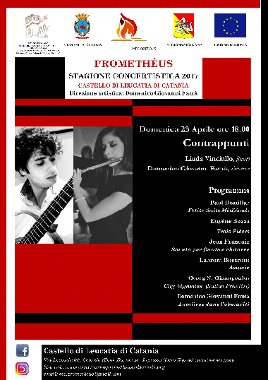 La Biblioteca Centro Culturale “R. Livatino” è spiacente di comunicare che il concerto "Contrappunti" ( Linda Vinciullo – flauto, Domenico Giovanni Famà – chitarra), previsto per Domenica 23 aprile p.v. alle ore 18.00 , è annullato in quanto il flautista, a causa di una forte crisi allergica, non è in condizioni di esibirsi.