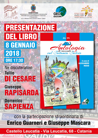 Lunedì 8 Gennaio 2018 alle ore 17.30 la Biblioteca Centro Culturale "R. Livatino" propone la presentazione del libro Antologia di racconti sul Catania Calcio a cura di Alessandro Russo e di Bruno Marchese.