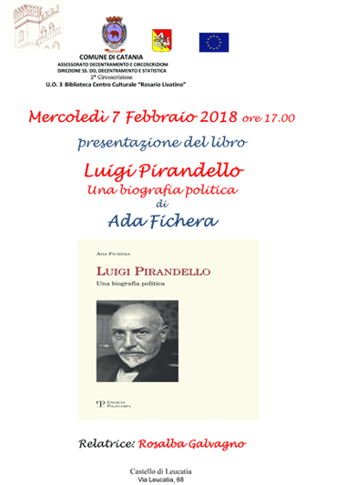 La Biblioteca Centro Culturale "R. Livatino propone, Mercoledì 7 febbraio alle ore 17.00, la presentazione del libro Luigi Pirandello-Una biografia politica di Ada Fichera.