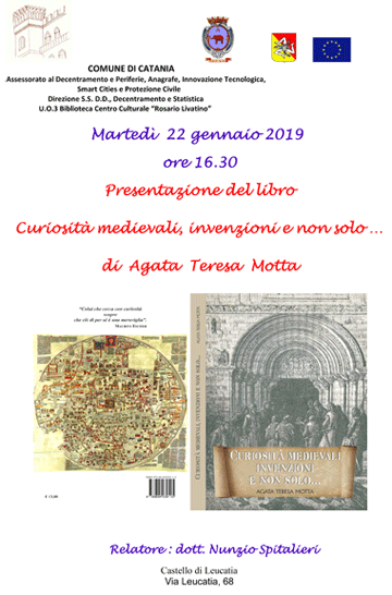 Martedì 22 gennaio 2019 alle ore 16.30 ,la Biblioteca Centro Culturale “R. Livatino” propone la presentazione del libro “Curiosità medievali, invenzioni e non solo...” di Agata Teresa Motta.