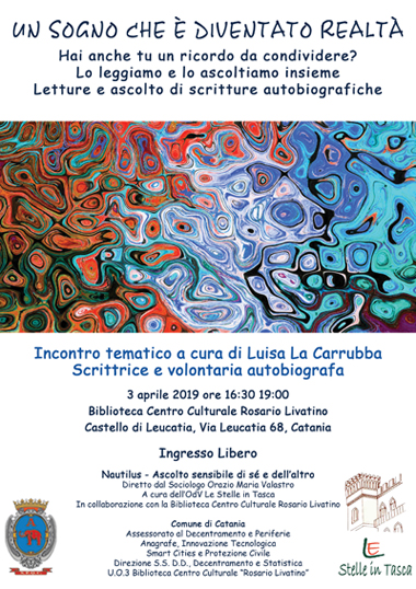 propone "Un sogno che è diventato realtà" -Incontro di lettura e ascolto di scritture autobiografiche a cura di Luisa La Carrubba, scrittrice e volontaria autobiografa.