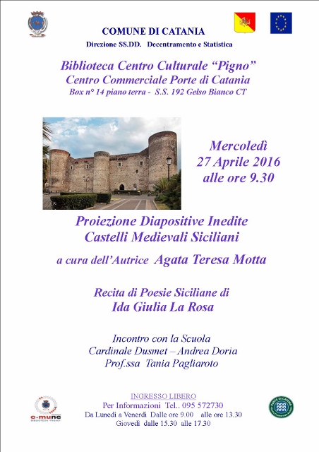Info: Biblioteca Pigno - cc Porte di Catania, BOX 14 piano terra Telefono - fax 095 572730