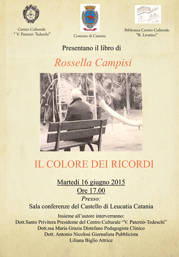 Martedì 16 Giugno 2015 alle ore 17.00, la Biblioteca C.C. "R. Livatino", in collaborazione con il Centro Culturale "V. Paternò Tedeschi", presenta il libro di racconti "Il colore dei ricordi" di Rossella Campisi.