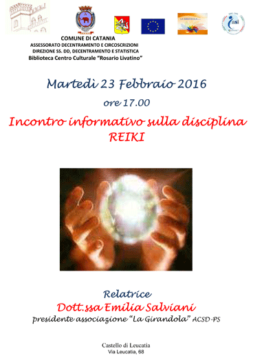 Martedì 23 Febbraio, alle ore 17.00 incontro informativo sulla disciplina REIKI.