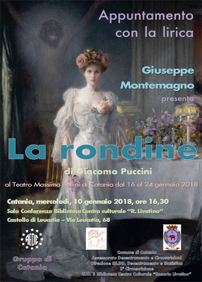 Mercoledì 10 Gennaio 2018 alle ore 16.30 la Biblioteca C.C. "R. Livatino" propone l'appuntamento con la lirica -La Rondine di Giacomo Puccini