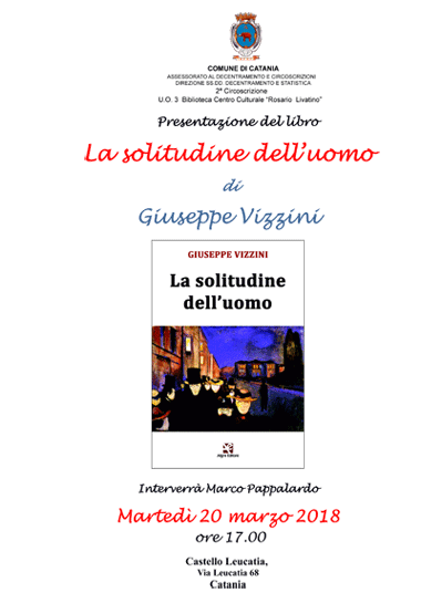 Martedì 20 marzo 2018 alle ore 17.00 la Biblioteca C.C. Rosario Livatino propone la presentazione del libro La solitudine dell'uomo di Giuseppe Vizzini.