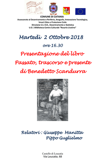 Martedì 2 Ottobre 2018 alle ore 16.30, la Biblioteca Centro Culturale “R. Livatino” propone la presentazione del libro "Passato, Trascorso e Presente" di Benedetto Scandurra.