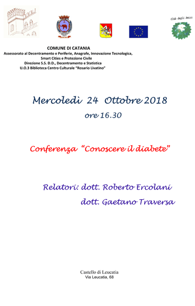 Mercoledì 24 ottobre 2018 alle ore 16.30, la Biblioteca Centro Culturale “R. Livatino” propone, in collaborazione con l'associazione "Club degli amici", la conferenza "Conoscere il diabete".