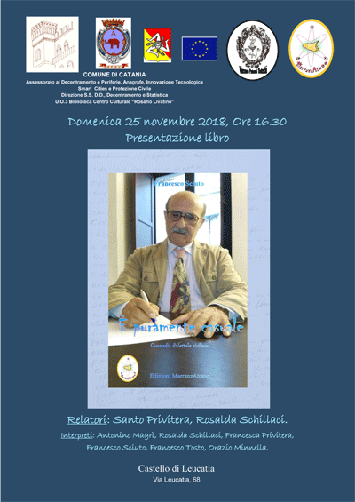 Domenica 25 Novembre 2018 alle ore 16.30, la Biblioteca Centro Culturale “R. Livatino” propone la presentazione del libro "E' puramente casuale" (commedia dialettale siciliana) di Francesco Sciuto.