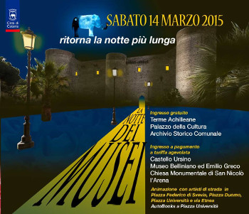 Dalle ore 19,00 ingresso al Castello e alle Mostre “Artisti di Sicilia” da Pirandello a Iudice e “Diva Agata nelle stanze del sogno” di Antonio Santacroce con tariffa ridotta di € 3,00. Ultimo ingresso ore 23,00.