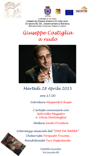 La Biblioteca Centro Culturale "R. Livatino" anche quest'anno propone l'iniziativa Incontro con il personaggio, in considerazione del notevole successo riscosso dagli incontri che hanno avuto per protagonista Pippo Pattavina e Enrico Guarneri e Martedì 28 Aprile alle ore 17.00 incontrerà Giuseppe Castiglia.