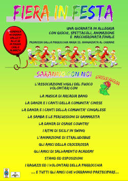Il 14 giugno nasce la prima edizione di "Fiera in festa", una manifestazione ideata ed organizzata dalla Parrocchia Maria Ss. Annunziata al Carmine e da un gruppo di volontari, nata dal desiderio di provare che la Piazza Carlo Alberto, al di là del Mercato giornaliero, può ancora continuare a "vivere" e trasformarsi in un centro di aggregazione per la gente del quartiere, per quanti vi si trovino a passare per i motivi più svariati, per le comunità straniere che gravitano nella zona e per i turisti; per tutti, insomma. Una manifestazione studiata come una festa, in cui gli artisti e le associazioni che parteciperanno saranno, nel contempo, animatori di tutti i presenti, coinvolgendoli in attività che creino un clima di festa, di condivisione delle capacità e delle esperienze, all'insegna del volontariato.