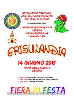 Per la prima volta nel centro di Catania, infine, sarà presente l'Associazione dei vigili del Fuoco Volontari con "Grisulandia": un percorso ludico-ricreativo per bambini che, con i suoi 400 metri quadrati di istallazioni, occuperà gran parte della piazza per insegnare ai bambini (e non solo!) che, qualche volta, giocare col fuoco si può. Solo con l'assistenza dei Vigili del fuoco, però.