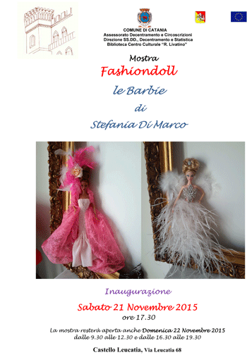 Sabato 21 e Domenica 22 Novembre 2015, la Biblioteca Centro Culturale "R. Livatino", visto il notevole consenso riscosso lo scorso anno, ripropone la mostra "Fashion doll", l'arte di creare Barbie uniche al mondo, realizzata da Stefania Di Marco.