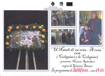 La Biblioteca Centro Culturale "R. Livatino", in collaborazione con il Centro Culturale "V. Paternò Tedeschi", propone un incontro in cui verrà rappresentato lo spettacolo della Novena 'U Natale di 'na vota: a cona.