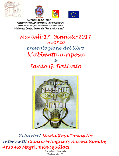 Martedì 17 gennaio 2017 alle ore 17.00, la Biblioteca Centro Culturale "R. Livatino" propone la presentazione del libro di poesie N'abbenta u rjposu di Santo Battiato.