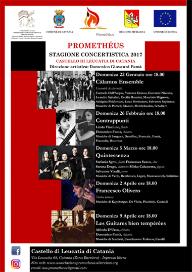 Domenica 26 Febbraio 2017 alle ore 18.00, secondo appuntamento della V Stagione Concertistica organizzato dalla Biblioteca C.C. "R. Livatino", in collaborazione con l'Associazione Culturale Promethéus presso il Castello di Leucatia di Catania.
