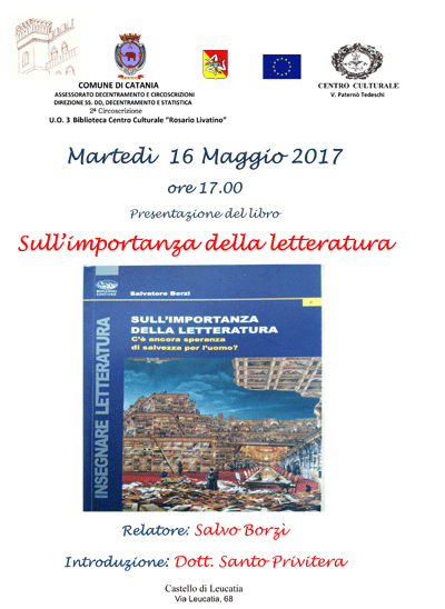 Martedì 16 Maggio alle ore 17.00 presentazione del saggio Sull'importanza della letteratura di Salvatore Borzì.