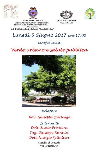 Lunedì 5 Giugno 2017 alle ore 17.00, la Biblioteca Centro Culturale "R. Livatino" propone, in collaborazione con il Centro Culturale "V. Paternò Tedeschi", la conferenza Verde urbano e salute.