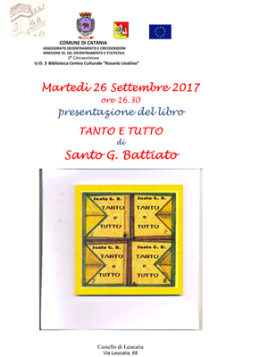 Martedì 26 Settembre 2017 alle ore 17.00, la Biblioteca Centro Culturale "R. Livatino" propone la presentazione del libro di poesie Tanto e tutto di Santo Battiato.
