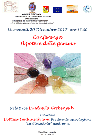 Mercoledì 20 Dicembre 2017 alle ore 17.00 la Biblioteca C.C. "R. Livatino" propone la conferenza "Il potere delle gemme".