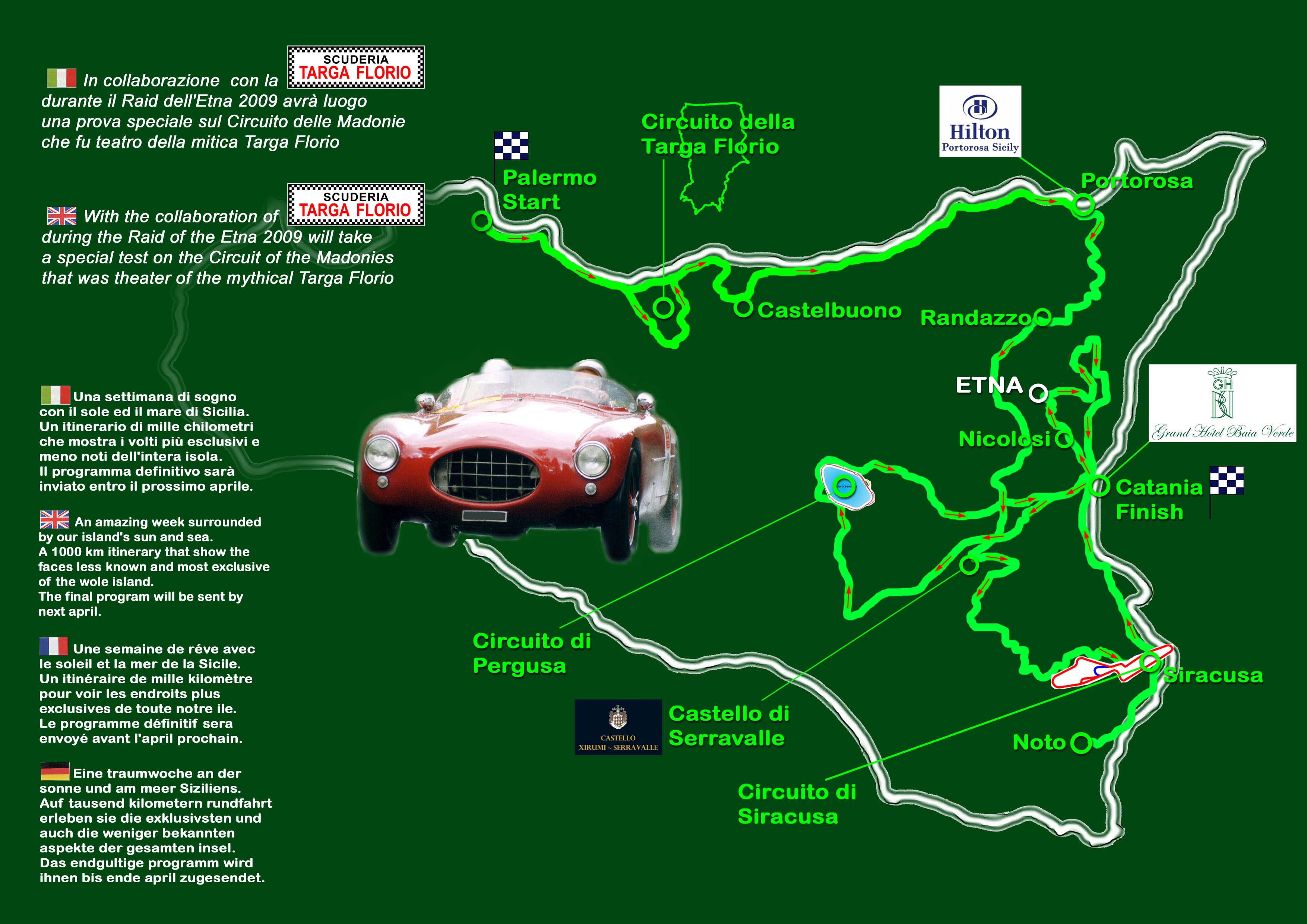 Abbiamo il piacere di inviarvi in anteprima lo schema di massima dell'itinerario del Raid dell'Etna 2009.